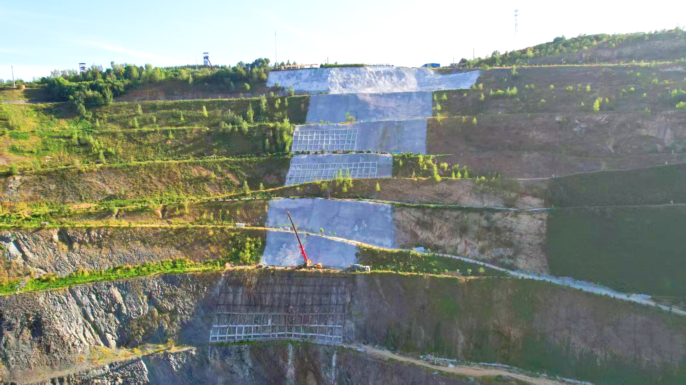 ?、騾^(qū)混凝土噴坡是實(shí)現(xiàn)邊坡生態(tài)修復(fù)與防護(hù)的關(guān)鍵工序。施工過(guò)程中,團(tuán)隊(duì)采用專(zhuān)業(yè)液壓噴坡設(shè)備,分層次均勻噴射混凝土,噴射厚度嚴(yán)格控制在設(shè)計(jì)標(biāo)準(zhǔn)范圍內(nèi),確?;炷僚c邊坡巖體緊密結(jié)合。Ⅳ區(qū)格構(gòu)梁作為邊坡結(jié)構(gòu)加固的重要組成部分,其施工質(zhì)量直接關(guān)系到整個(gè)邊坡的穩(wěn)定性。在Ⅳ區(qū)格構(gòu)梁節(jié)點(diǎn)施工過(guò)程中,原材料方面,對(duì)進(jìn)場(chǎng)的鋼筋、混凝土等材料進(jìn)行嚴(yán)格抽檢,確保所有材料符合國(guó)家規(guī)范及項(xiàng)目設(shè)計(jì)標(biāo)準(zhǔn),堅(jiān)決杜絕不合格材料入場(chǎng)。鋼筋加工環(huán)節(jié),項(xiàng)目管理人員根據(jù)節(jié)點(diǎn)設(shè)計(jì)圖紙精準(zhǔn)下料,連接強(qiáng)度等指標(biāo)均經(jīng)過(guò)現(xiàn)場(chǎng)檢測(cè),確保滿(mǎn)足結(jié)構(gòu)受力要求。